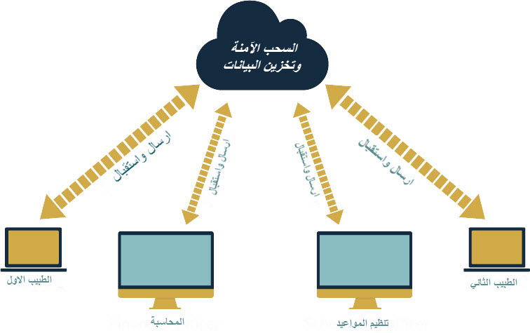 - يستطيع المستخدم الدخول إلى معلومات العيادة من أي مكان تتوافر فيه الانترنت